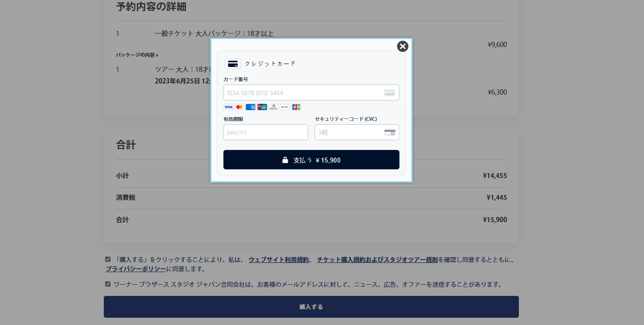 패키지내용은 대인/중인/소인 다 같습니다! 가격은 일반티켓(6300엔)보다 +3300엔(9600엔) 이더라고요!